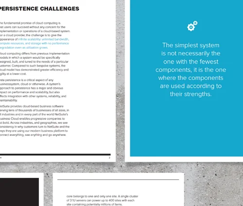 This white paper series was designed to reinforce NetSuite not only as a leader in cloud-based business software; but, also as an industry thought-leader. The layout is built to best accommodate both on-screen and mobile reading. The papers' ability to transcend typical business dissertations helps them stand apart. And, custom icons add a refreshing touch of whimsy to make them more personal, fun, and engaging.