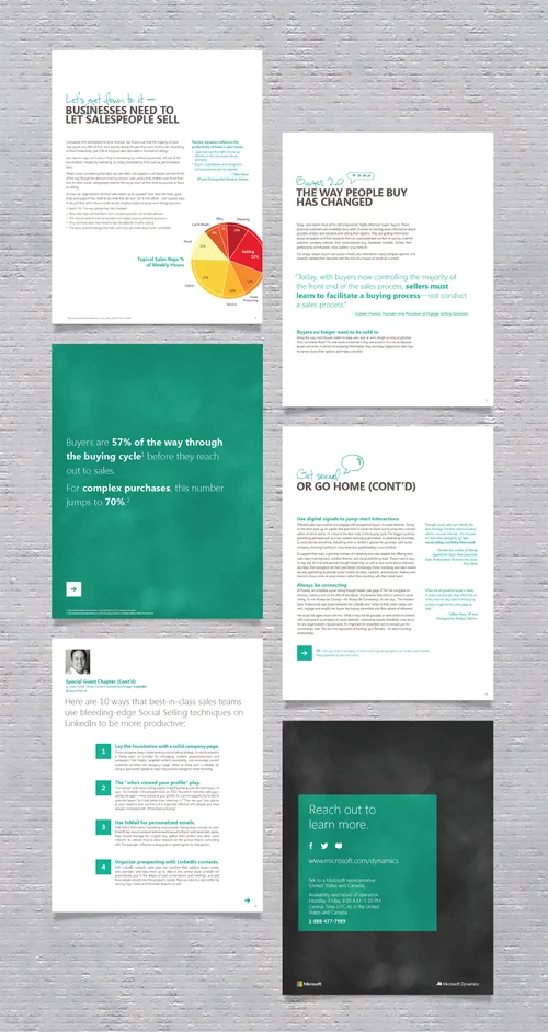 This Microsoft eBook helps bus- inesses confront the challenges that sales departments face in today's marketplace. The design effectively balances content, key messages, and expert input to engage audiences across industries and at all levels of employment.